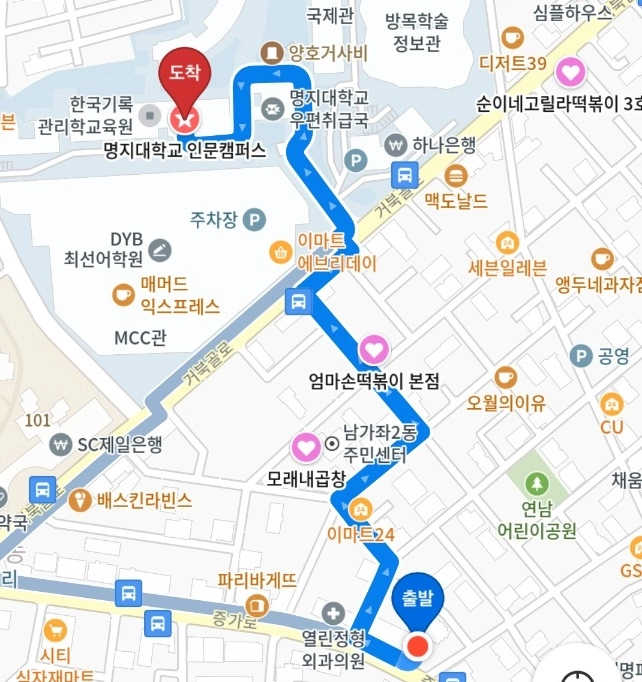 명지대학교 myoungji univ. 500m distance walking on 5minute